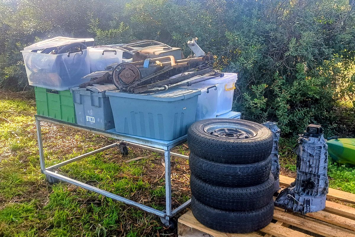 The engine has been disassembled. It comes with a reconditioned head and again lots of spare engine components (e.g. multiple piston sets).