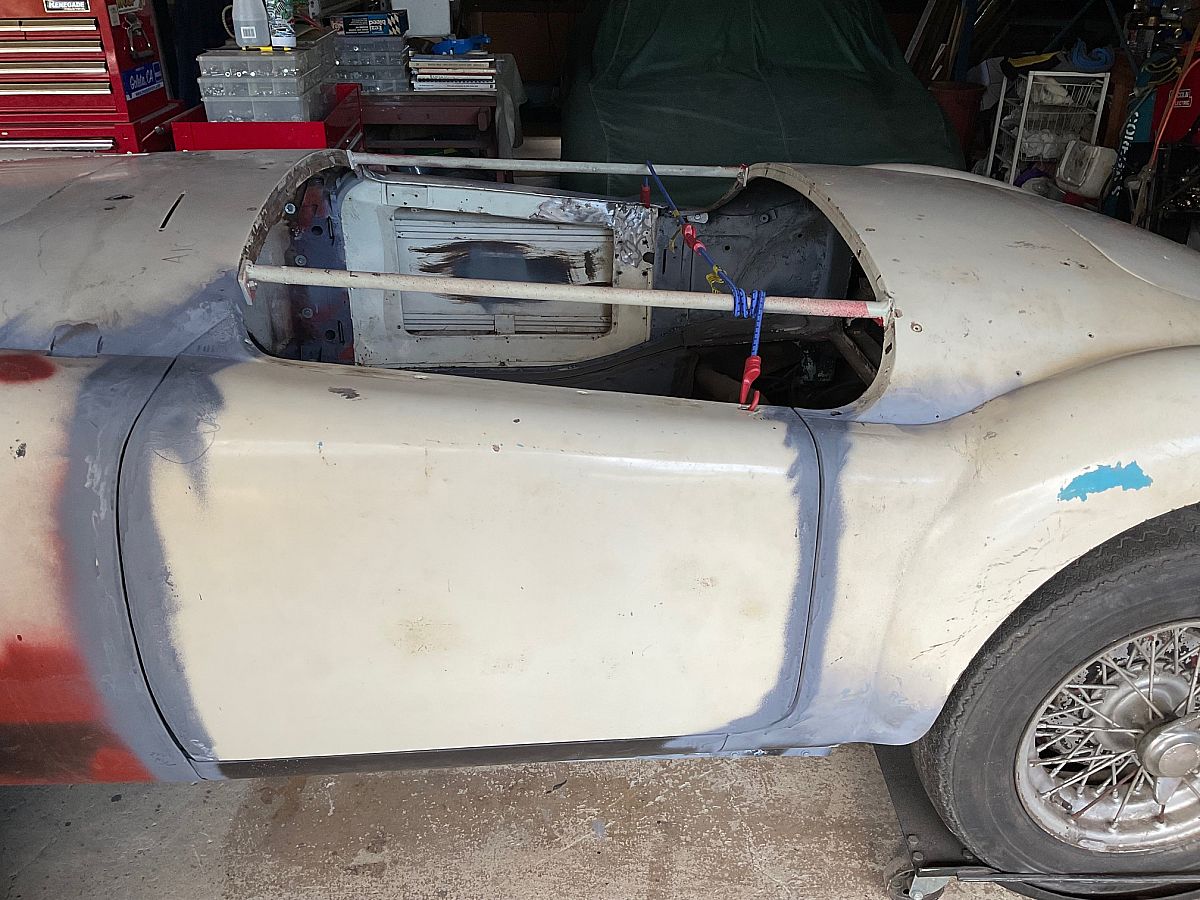 Partially dismantled vehicle. All panel/repair work done, just waiting to be pre finished for painting. All parts (except a seat back!) are stored ready for restoration and returning to car. This car is an Australian assembled MGA (#1104), still in it's original colour of Nurburing White. Original engine and gearbox come with car. Now a completely rust free car.