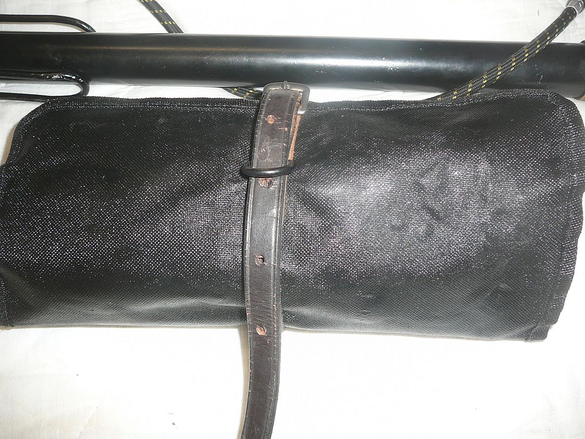 1x canvas toolkit roll with leather retaining strap and buckle [made in tan canvas with a flexible outer coating]