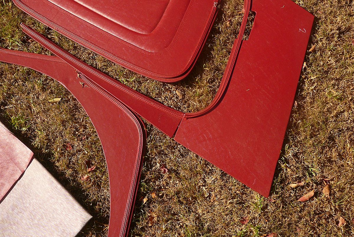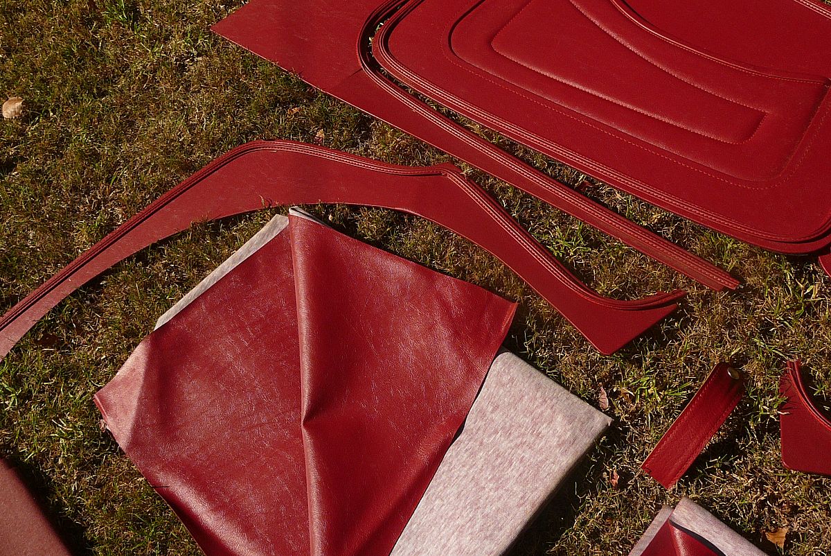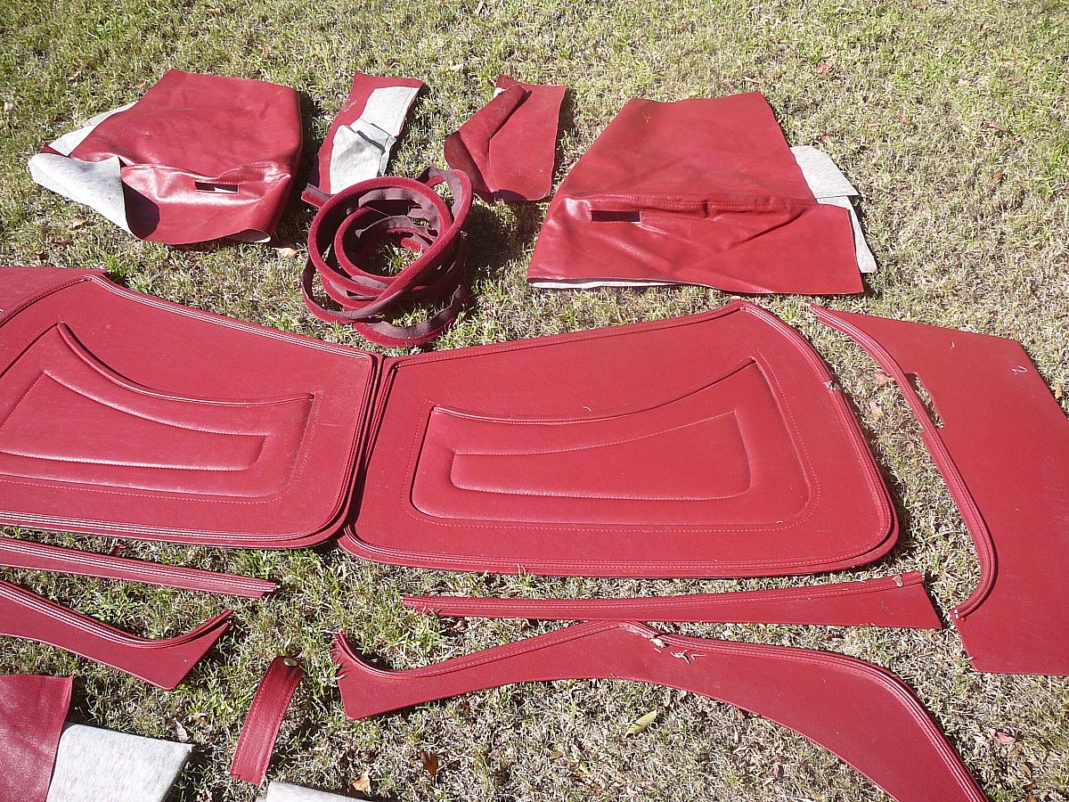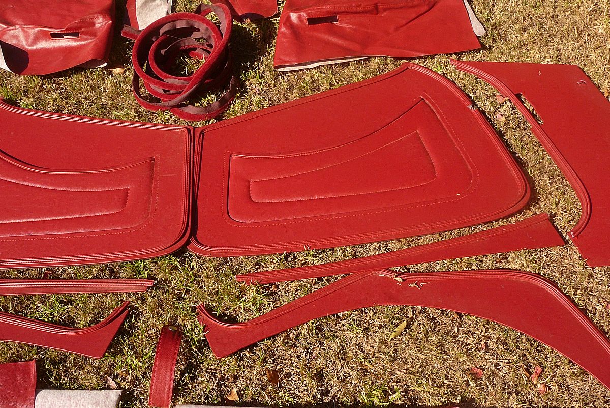 This MG TC leather and vinyl trim panel set cost new $1440 will sell at 1/2 price $750 included is under dash side trim panels left and right, rear quarter panels and under door trim panels left and right ,rear soft wheel arch covers left and right ,complete door cards left and right,2 rolls of correct colour vinyl trimming material, there are some other smaller accesories as can be seen in the photos