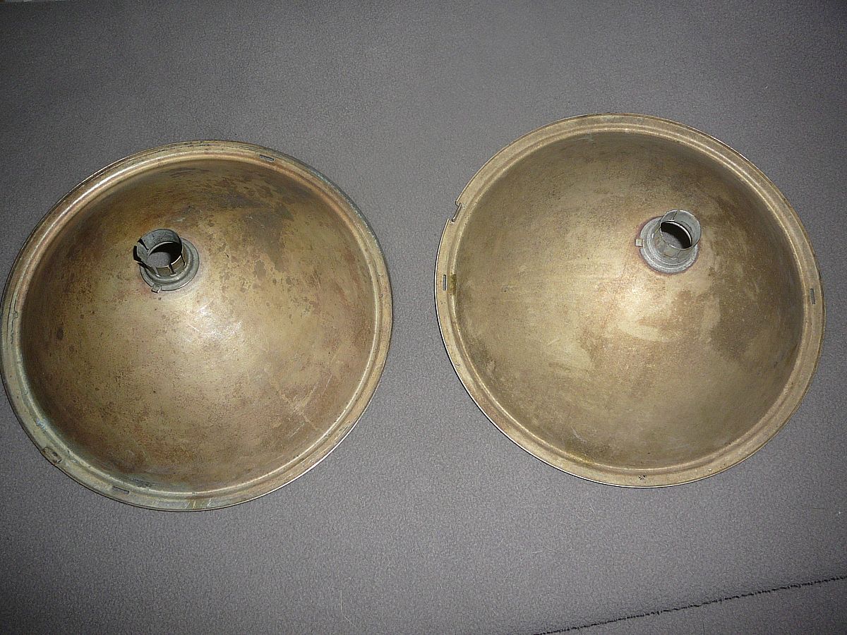 MG TC brass headlight reflectors for the the Lucas 8 inch MB or L 140 headlamps used on the TC / TA / TB.THese reflectors are in very good condition with no bends or dents,they will need to be resilvered as there is very little silver left or perhaps instead of silvering have them chromed. Hard to find in this original undamaged condition