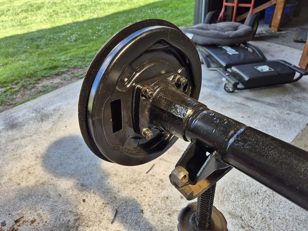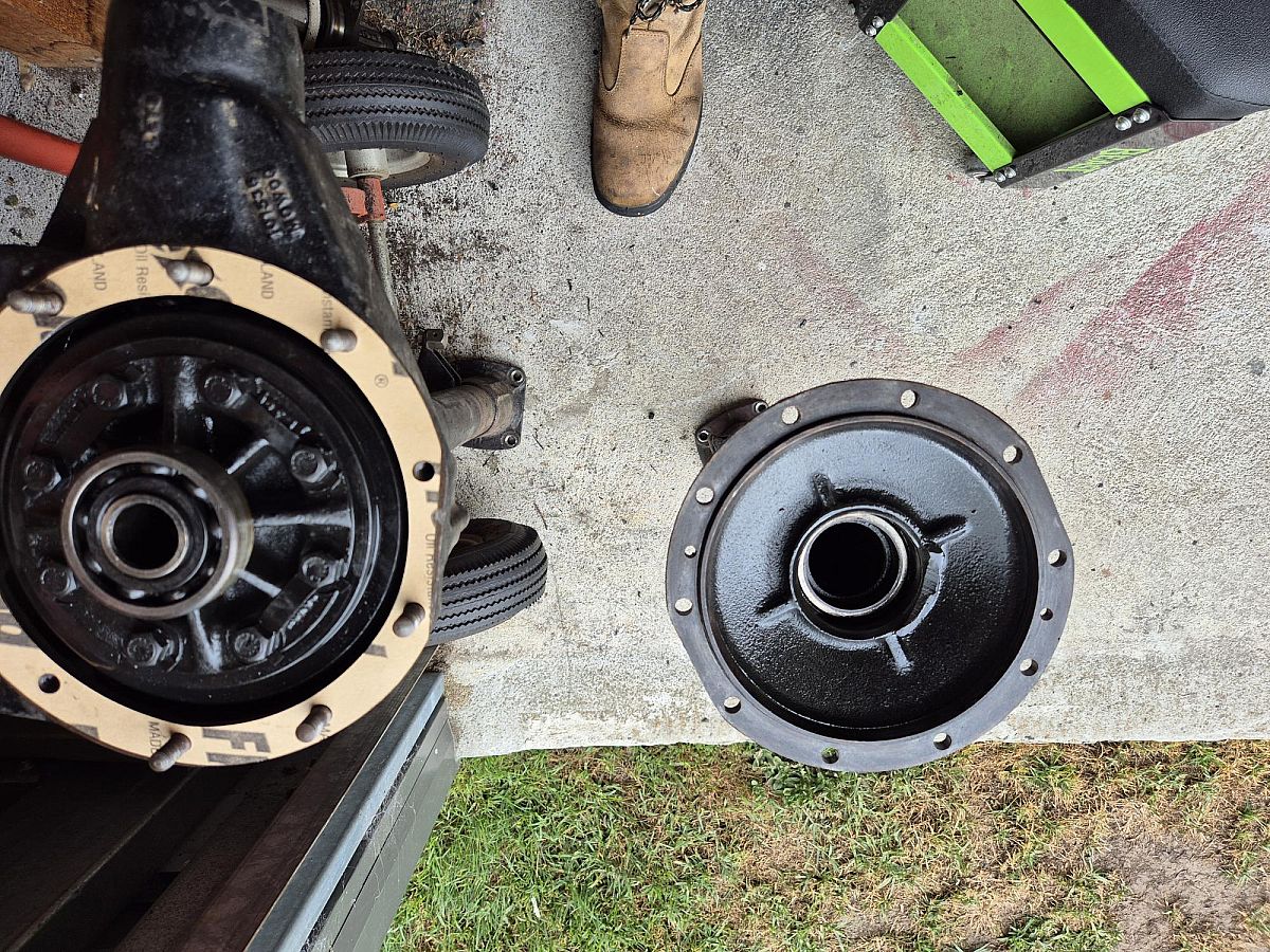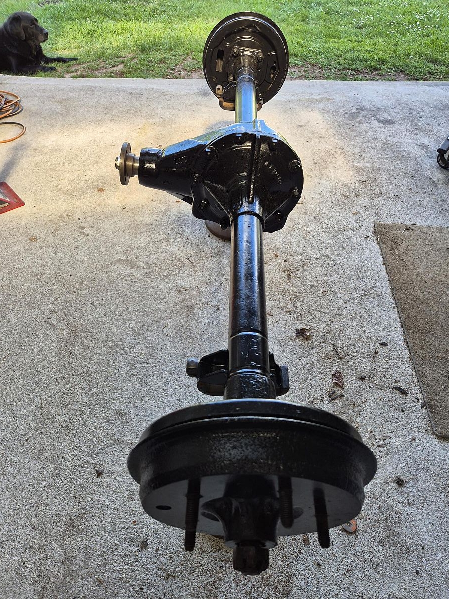 Rear axel to suit a TD/TF with 5-stud wheel hubs. Restored with new pinion oil seal. Excellent condition. Brake shoes and cyclinders not included.