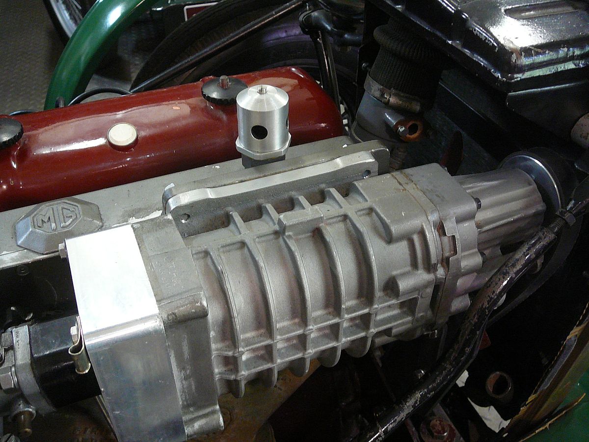 EATON Supercharger MG TC / TA / TB / TD / TF on aluminium manifold complete with SU 1 1/2 carburettor and relevant parts ready to install.This is the highly efficient Eaton M24 supercharger with the 2 x gearing in the nose that allows the smaller size but still maintains a highly efficient operation. Because of the smaller body size this supercharger is suitable to fit to the MG TF without alteration to the body panels ,with the MG TC and MG TD it is able to be fitted without having to remove the radiator support bracket.