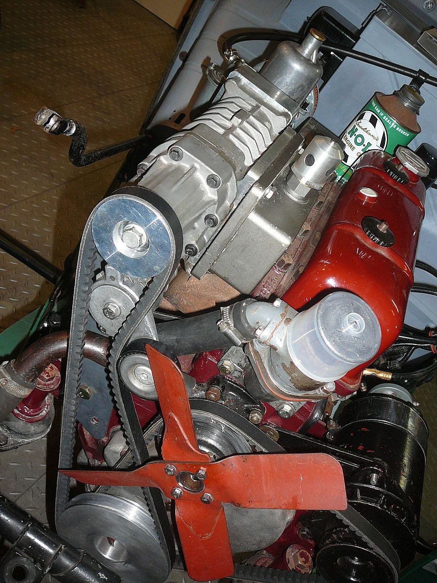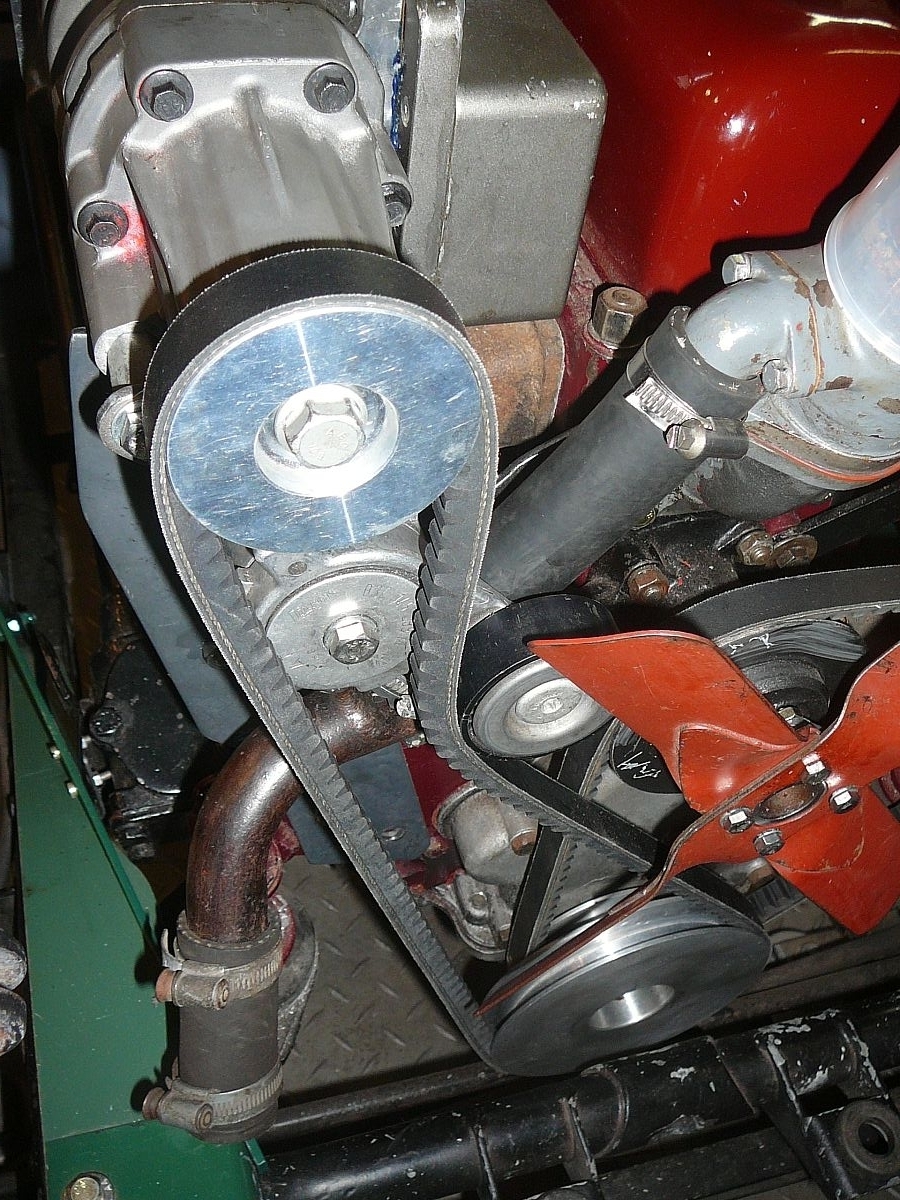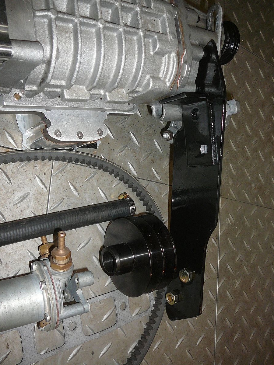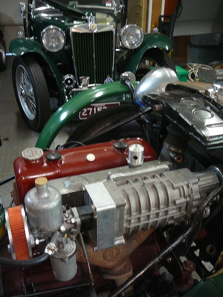 eg. on this supercharger wth the crankshaft pulley at 95mm and the supercharger pulley at 58mm and taking into account the 2 times gearing in the nose the effective ratio would be approxomately 2.8- 1 more than enough for the MG TC