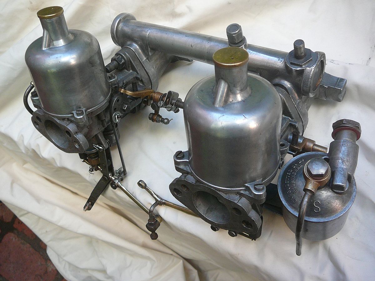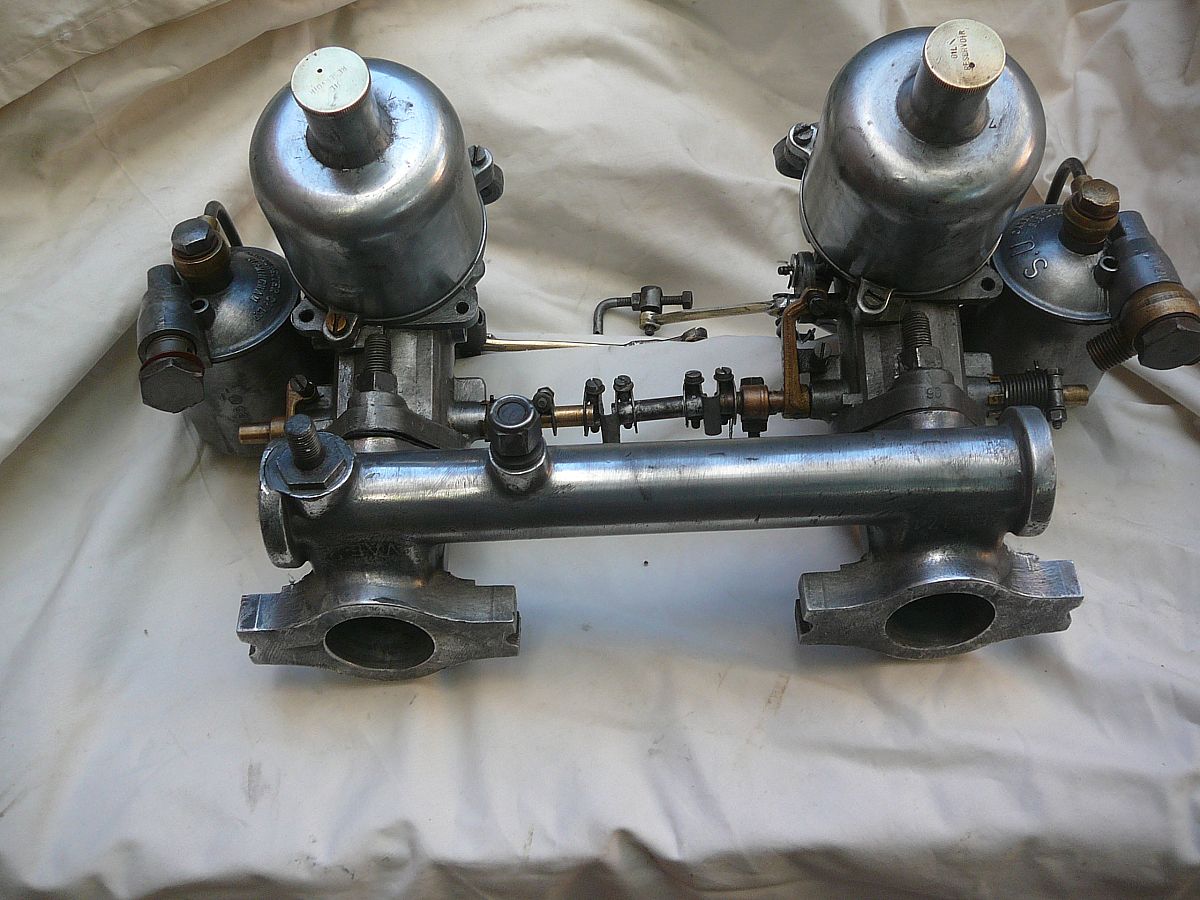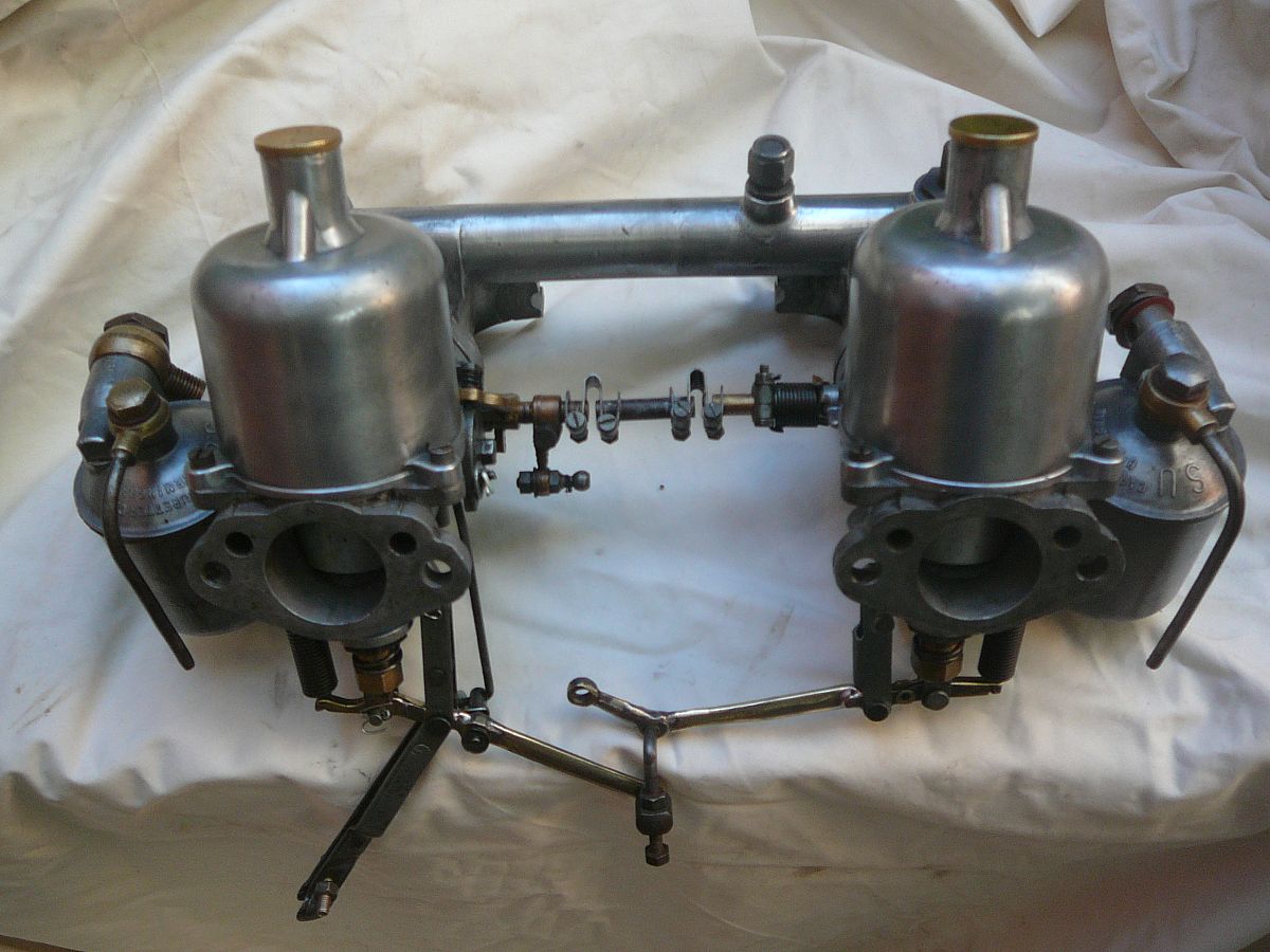 Set of SU H4 AUC6020 1 1/2 inch carburettos set up for an MGA complete with correct choke and jet linkages.The carbs are in very good condition every thing works as it should., jet needle and seats are clean and unmarked, all cork jet seals have been replaced with Viton rubber seals The 1 1/2 inch factory manifold is in excellent condition ,there is no corrosion!