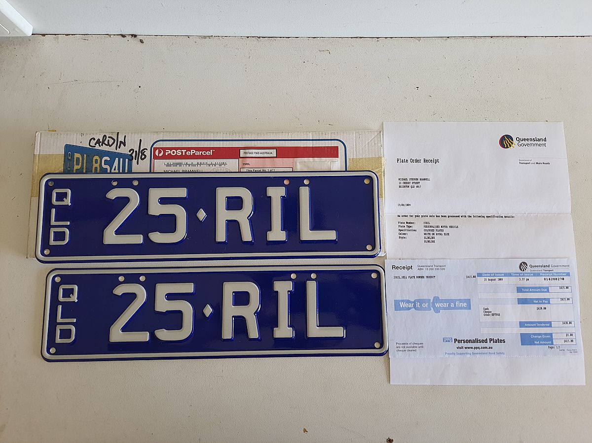 25 RIL personalized plates in slimline format. These have never been fitted to a car. They can be reissued in whatever colour and size combination PPQ offer.