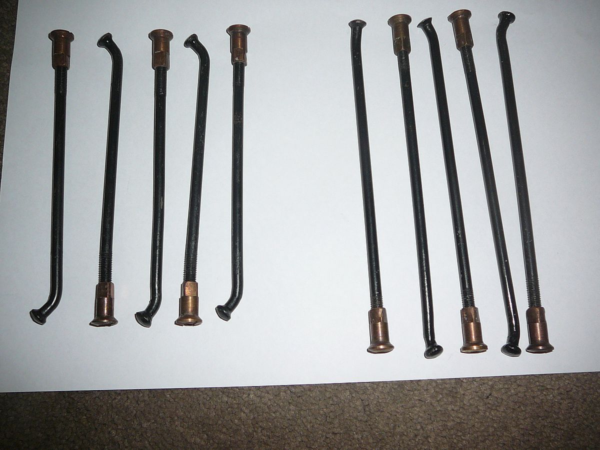 These are original factory wire wheel spokes for 16 centre laced wheels,they they never been used and the spoke nipples are brass .These spokes are the correct thickness diameter for 16" Dunlop wheels and the brass nipples are the correct nipples for 16"wheels