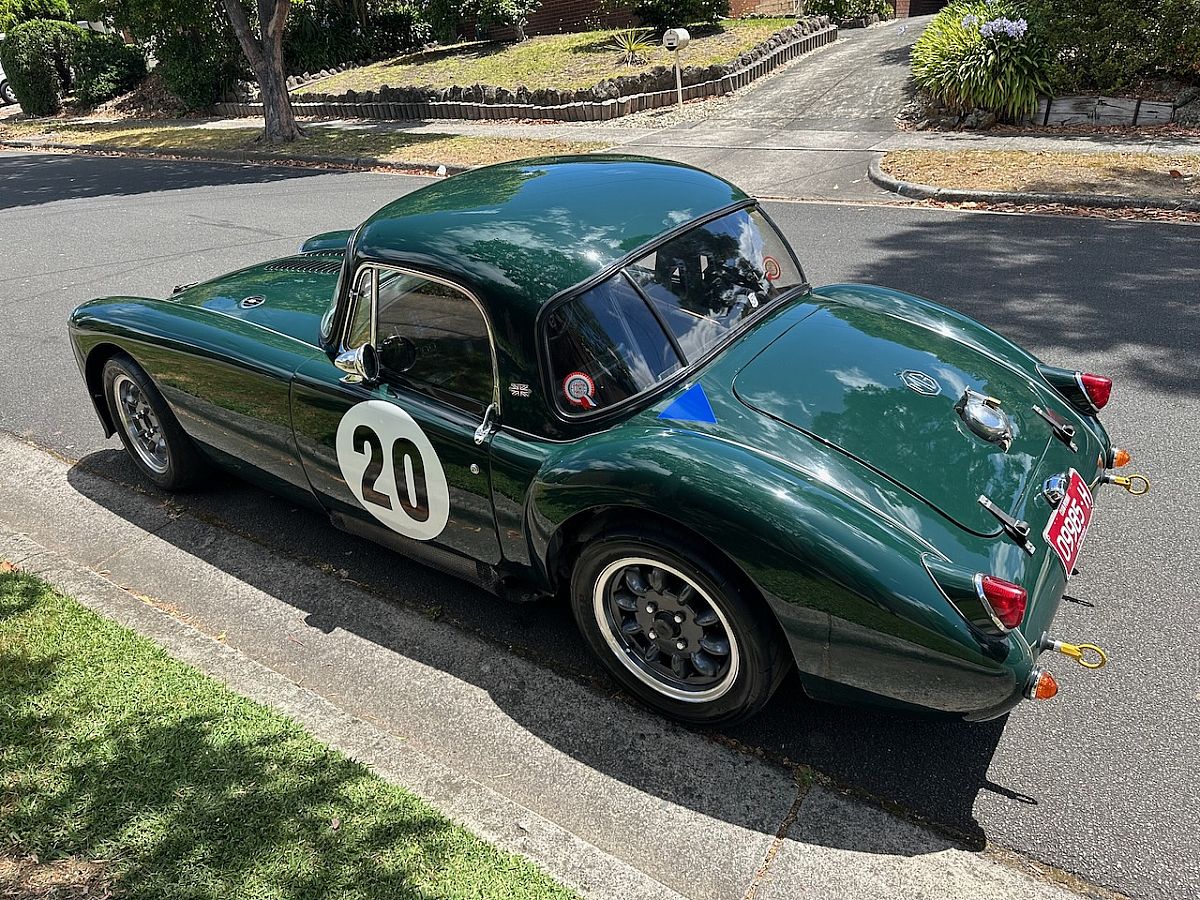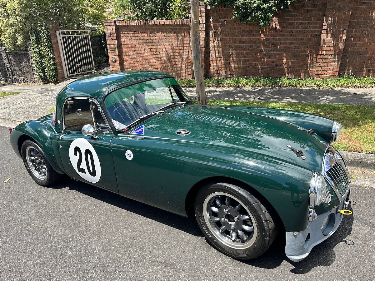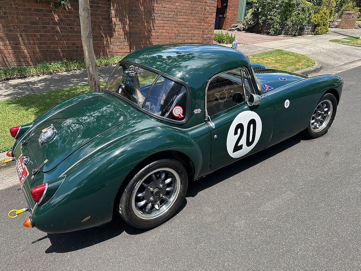 MGA Coupe built by MG Workshops (Melbourne) in the '90s. It is fitted with an 18GB (5) brg engine (1950cc) with a MSX crossflow alloy head and twin 45 DCOE Weber carburettors, gasflowed, large valves, Titan roller rockers, Carillo rods, JE forged piston, custom extractors and side exhaust, 123 distributor, 4-speed all syncro LH overdrive gearbox and Quaife 3.9 differential. Front ventilated disc brakes with 4 pot calipers, rear disc brakes and in-cabin bias control valve. Coil over front suspension with Gaz shock absorbers, rear tramp and panhard rod, 15" x 6" Superlite alloy wheels (Dunlop Direzza 205x15x50 tyres). 50L alloy fuel tank, foam filled with Astron 4" cap. Louvered bonnet, polycarbonate side and rear windows, internal roll-over protection, Cobra race seat, VDO tacho with shift light, Moto-Lita steering wheel. Spares include 18GB engine block, crankshaft, new windscreen, original driver's seat. Detailed file of all expenditure on the car over the last 20 years, including recent dyno tuning results and head gas flow results.
