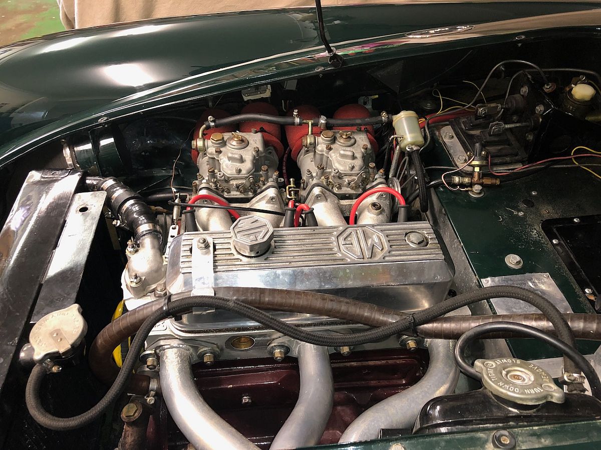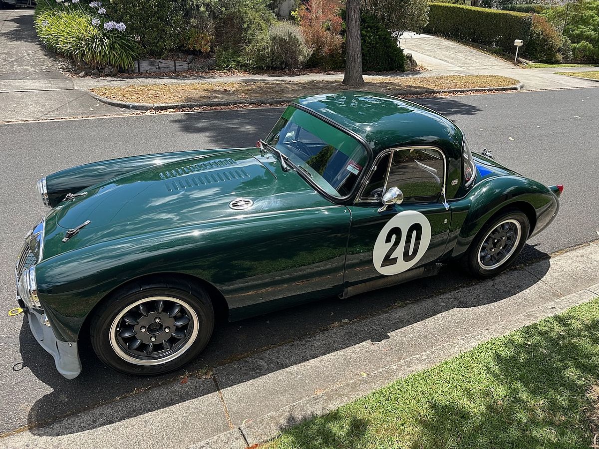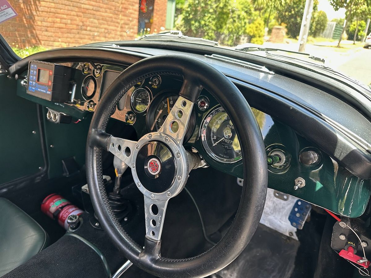 MGA Coupe built by MG Workshops (Melbourne) in the '90s. It is fitted with an 18GB (5) brg engine (1950cc) with a MSX crossflow alloy head and twin 45 DCOE Weber carburettors, gasflowed, large valves, Titan roller rockers, Carillo rods, JE forged piston, custom extractors and side exhaust, 123 distributor, 4-speed all syncro LH overdrive gearbox and Quaife 3.9 differential. Front ventilated disc brakes with 4 pot calipers, rear disc brakes and in-cabin bias control valve. Coil over front suspension with Gaz shock absorbers, rear tramp and panhard rod, 15" x 6" Superlite alloy wheels (Dunlop Direzza 205x15x50 tyres). 50L alloy fuel tank, foam filled with Astron 4" cap. Louvered bonnet, polycarbonate side and rear windows, internal roll-over protection, Cobra race seat, VDO tacho with shift light, Moto-Lita steering wheel. Spares include 18GB engine block, crankshaft, new windscreen, original driver's seat. Detailed file of all expenditure on the car over the last 20 years, including recent dyno tuning results and head gas flow results.