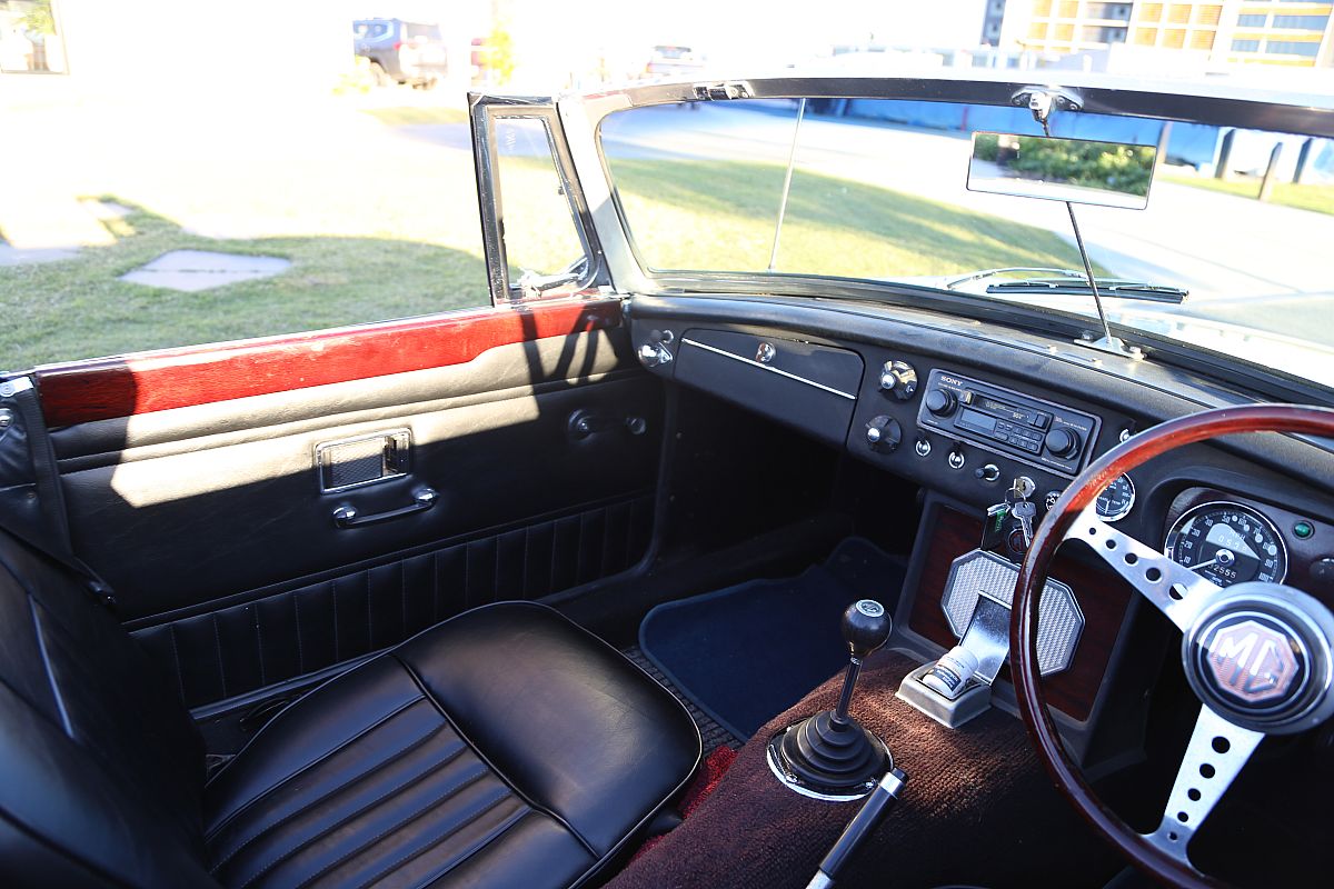 In very good original condition and used mostly as a weekend drive, I have had the privilege of owning this Sapphire Blue marque for the past 25 years [I have enjoyed owning 4 MG 's in my time].In excellent mechanical condition with overdrive in 3rd and top, I have recently added new seats,interior door panels and a new tonneau cover. It comes with chromed spokes, timber steering wheel,timber trim on door tops and selected dashboard areas, included is a work in progress hard top.