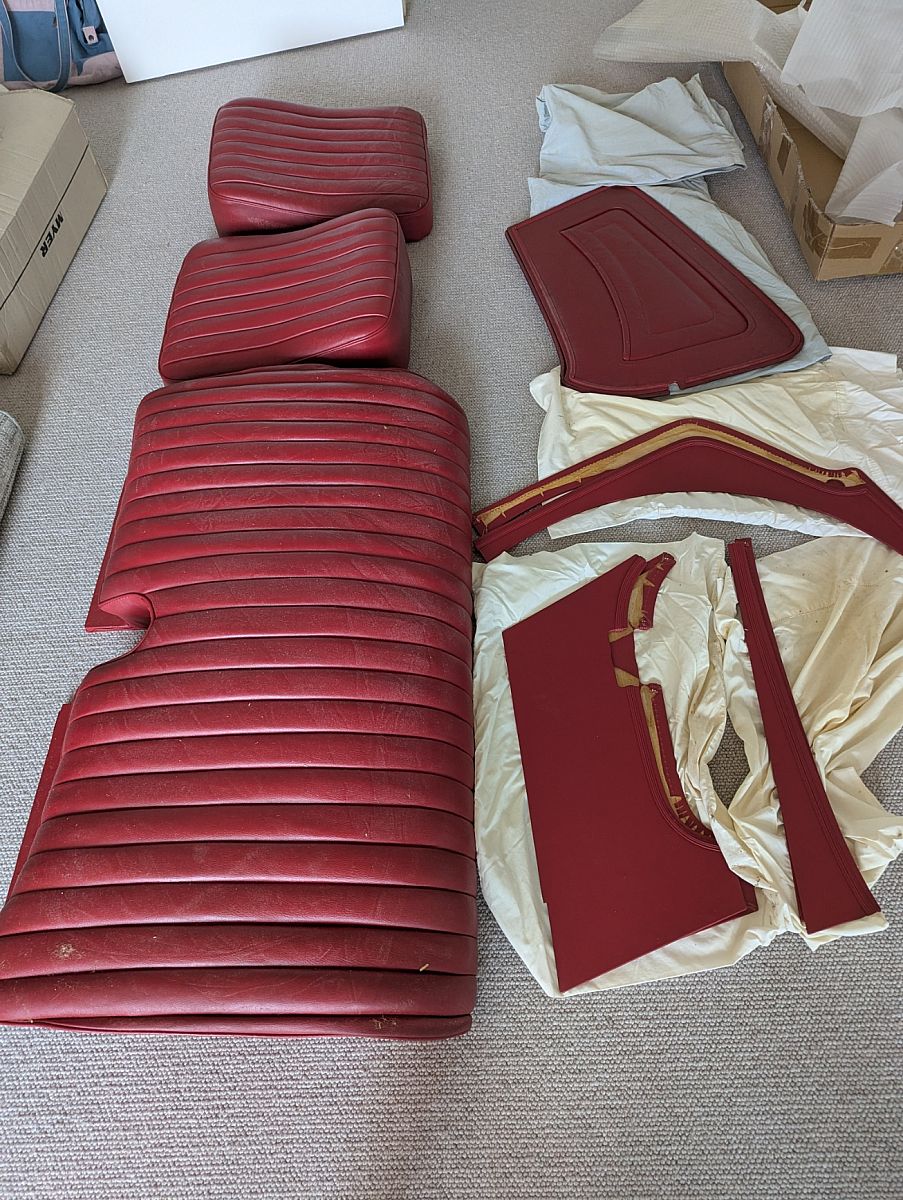 Red Interior – bought out of UK 25+ yrs ago - Connolly Brothers. Seats, panels assembled ready to install. Black beading (I was going to paint it cream)