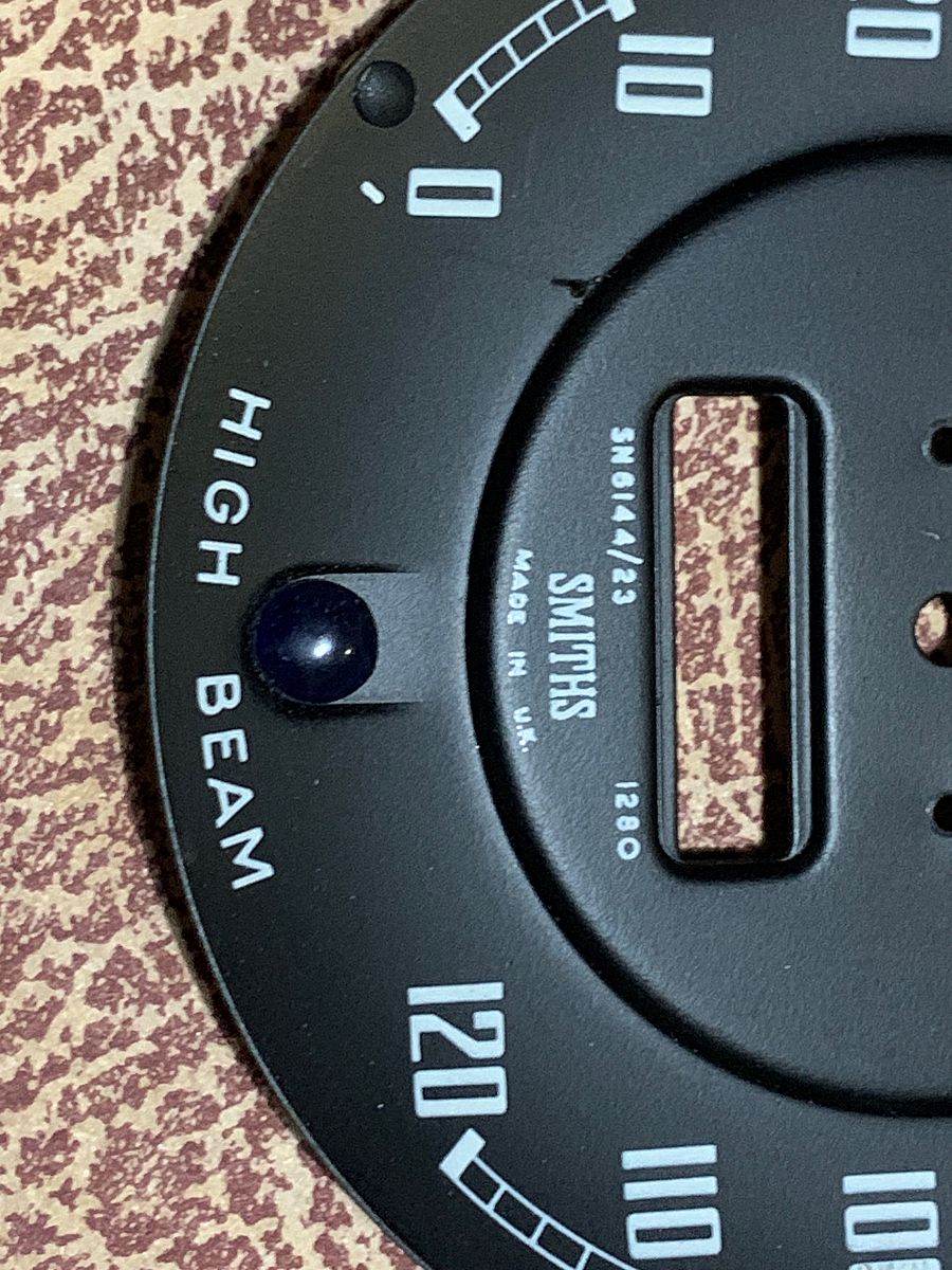 AS NEW! - came from a re- calibrated Smiths gauge in an Australian car, with a gearbox change- Has high beam jewel,