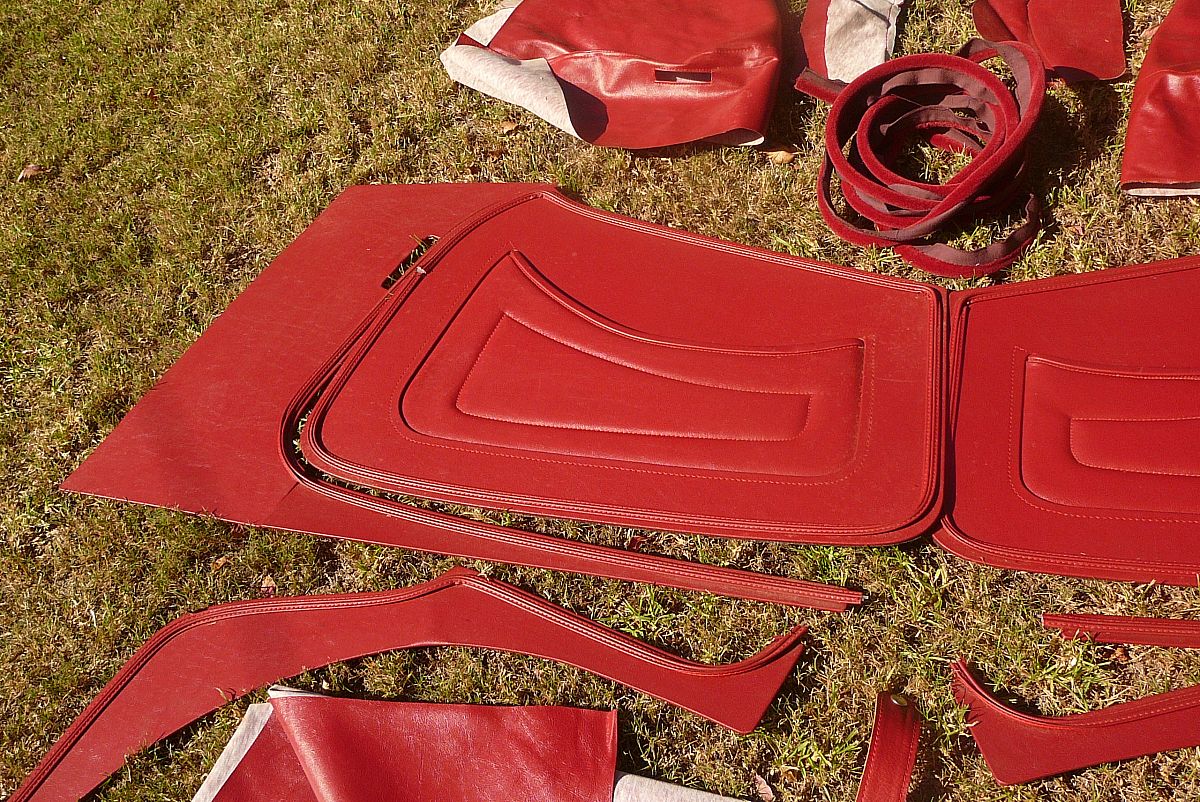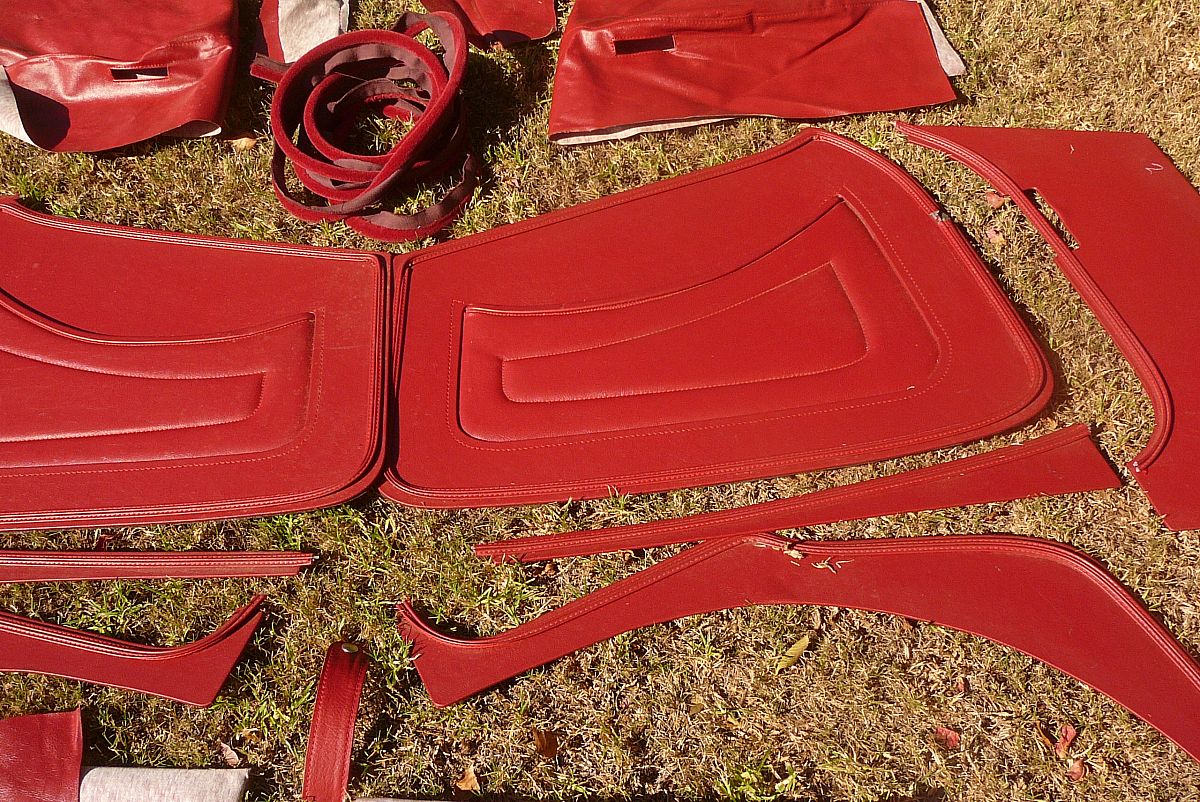 This MG TC leather and vinyl trim panel set cost new $1440 will sell at 1/2 price $750 included is under dash side trim panels left and right, rear quarter panels and under door trim panels left and right ,rear soft wheel arch covers left and right ,complete door cards left and right,2 rolls of correct colour vinyl trimming material, there are some other smaller accesories as can be seen in the photos