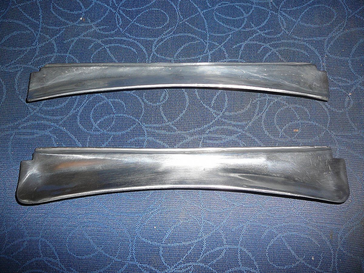 2 unused undrilled Monaro motors type., aeroscreen plinths for the MG TC.this is the later type made to sit slightly lower so the glass screen would clear the wiper motor and also give better visibility over the scuttle top .The plinths are held with either 2 or 3 wood screws to the scuttle top but the holes have not been drilled in the plinths