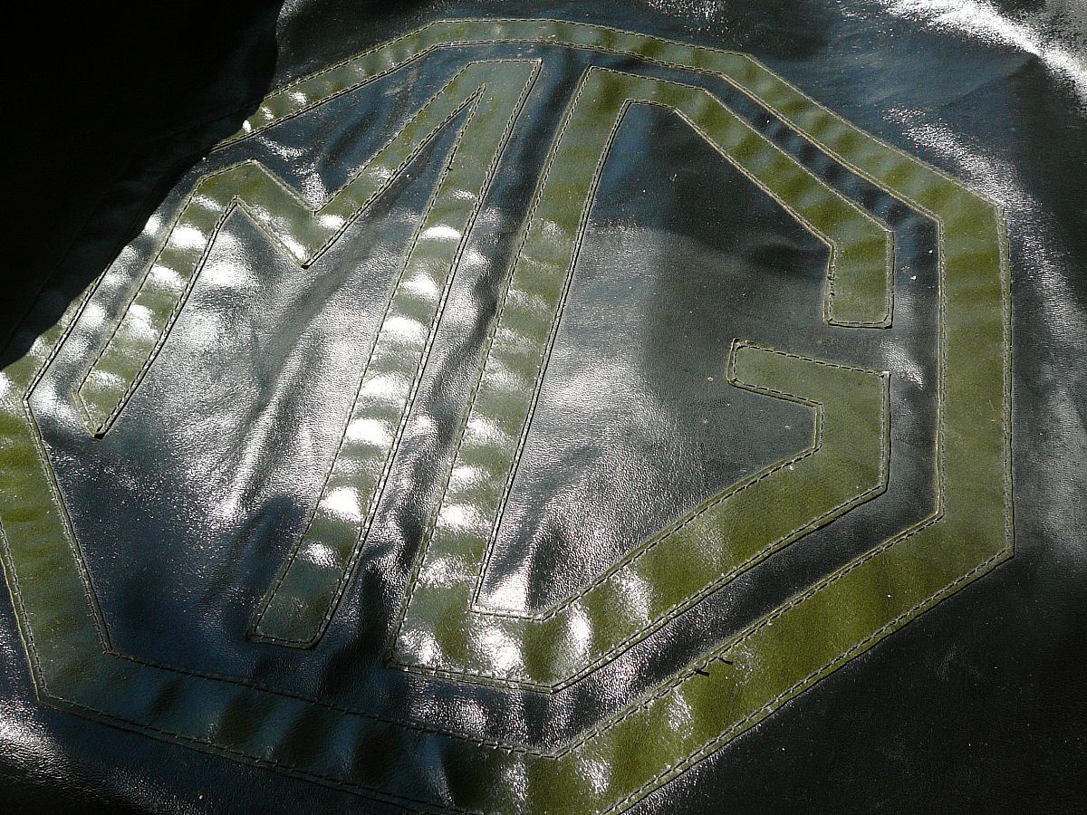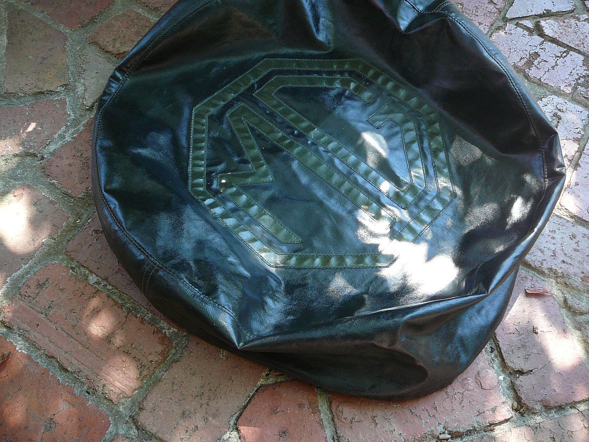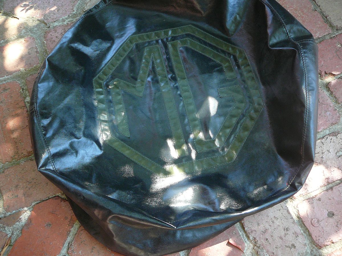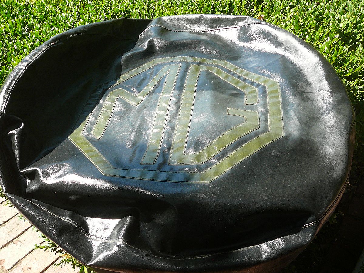 THis is a 1950's,1960's MG TC / TD spare wheel cover,very well made and in great condition for its age,originally I thought this was for a MG TD / TF 15 inch but I have tried this on a MG TC 19 inch spare wheel and it does fit quite snugly , to have somthing monogrammed today like this would cost a fortune